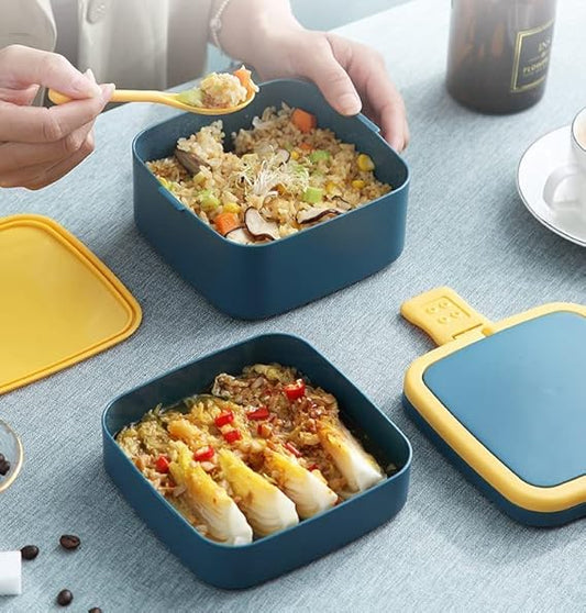 Airtight Lunch Box Set Compartment Tiffin with Handle & Push Lock | Plastic Tiffin Box for Travelling, School & Office Exclusive (BLUE)