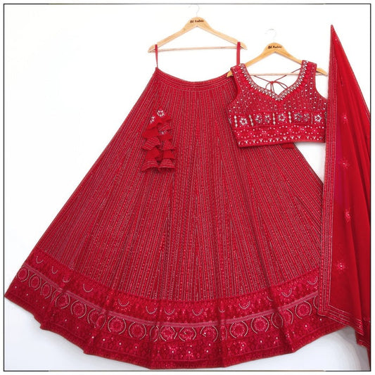 Red color Real Mirror Embroidery work Designer Lehenga Choli for Wedding Function