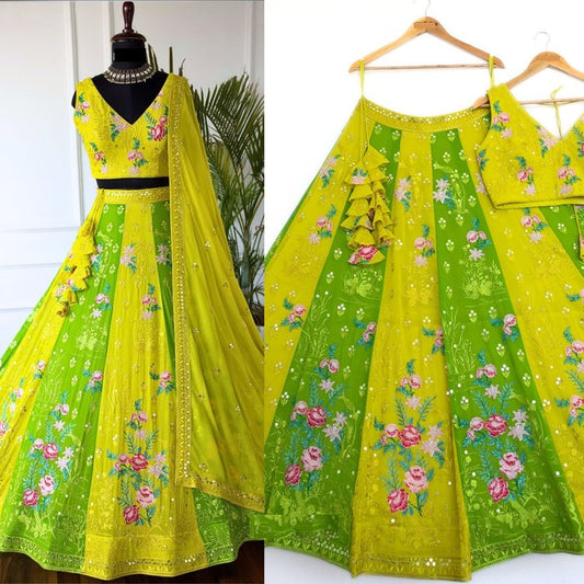 Mehendi color Mirror & Sequence Embroidery work Designer Lehenga with Mehendi choli for Any Function