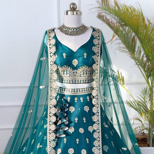 Mid Green color Sequence Thread work Designer Wedding Lehenga Choli For Wedding Function