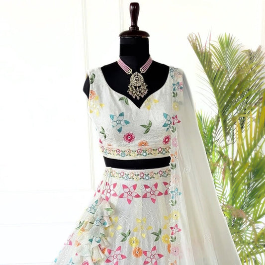 Off white color Sequence & Thread Embroidery work Designer Lehenga Choli for Wedding Function