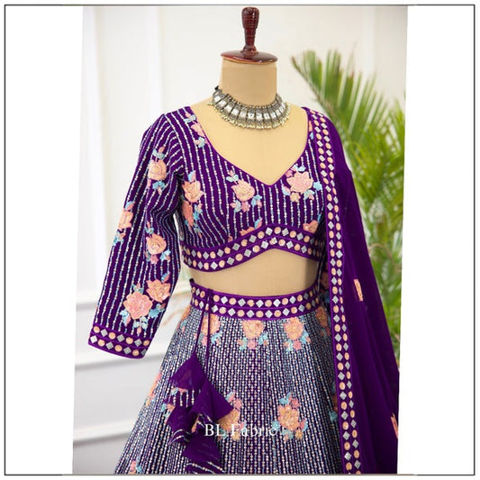 Purple color Sequence Embroidery work Designer Lehenga Choli for Wedding Function
