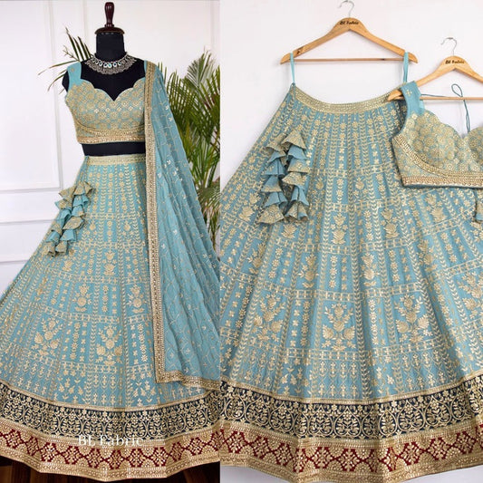 Light Blue color Zari Embroidery work Designer Lehenga Choli for Wedding Function