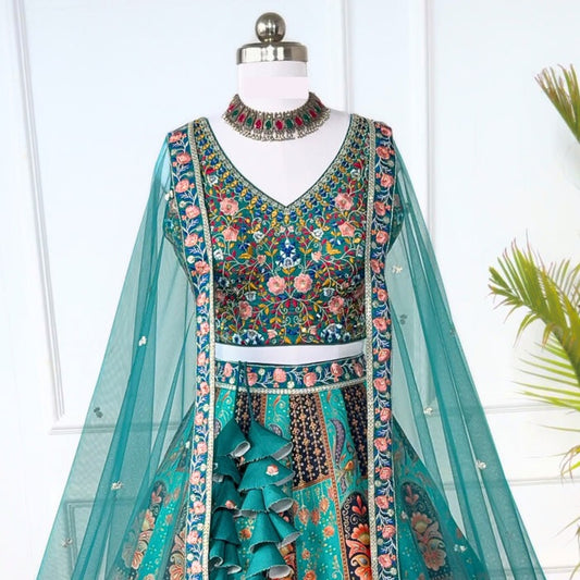 Firozi color Sequence Embroidery work Designer Lehenga with Firozi choli for Any Function