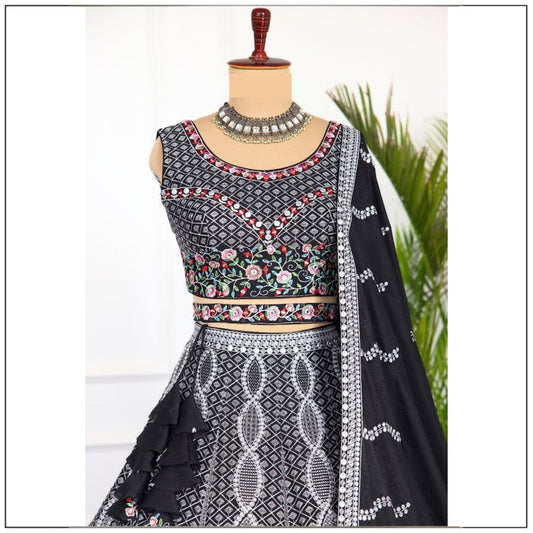Black color Real Mirror & Embroidery & Sequence work Designer Lehenga Choli for Wedding Function