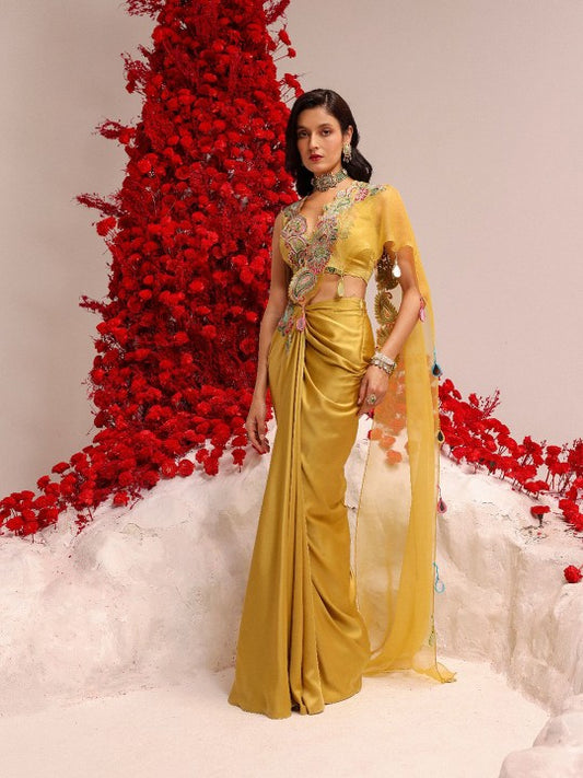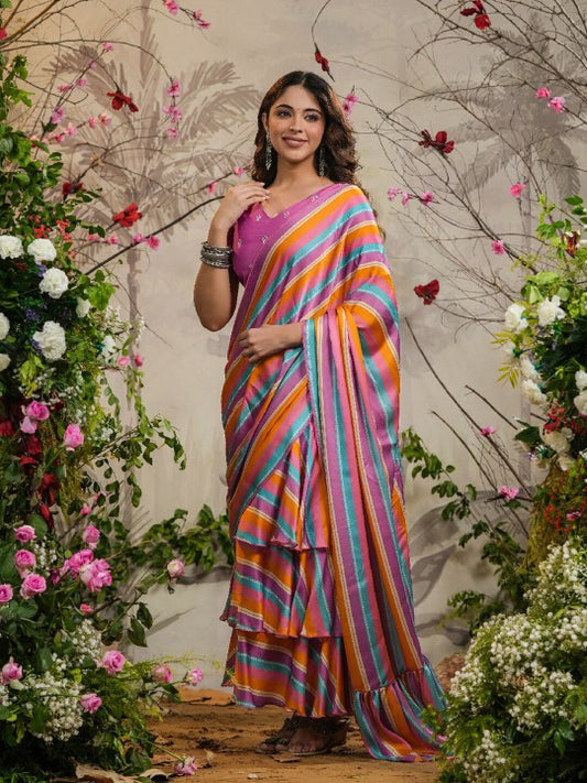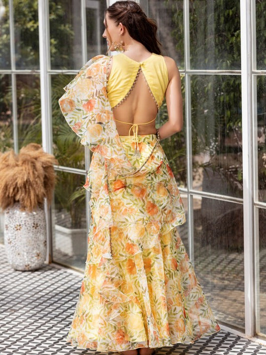 Floral Printed Beads & Stones Organza Ready to Wear Saree
