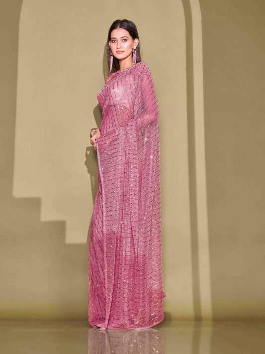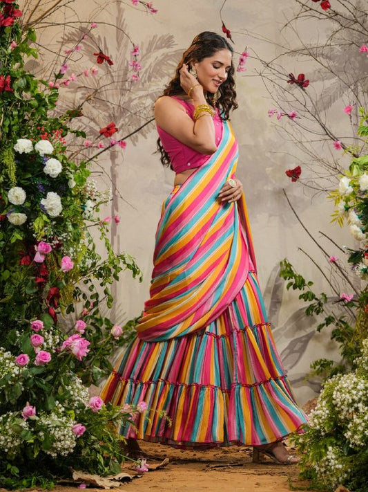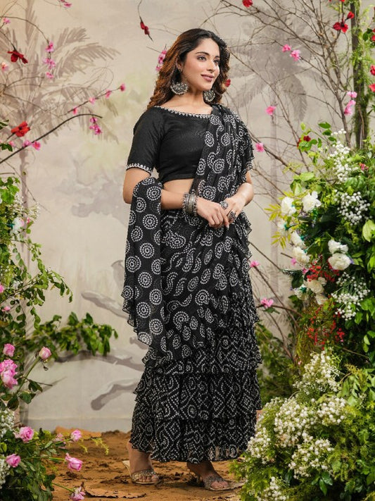 Bandhani Printed Embroidered Pure Georgette Ready to Wear Saree
